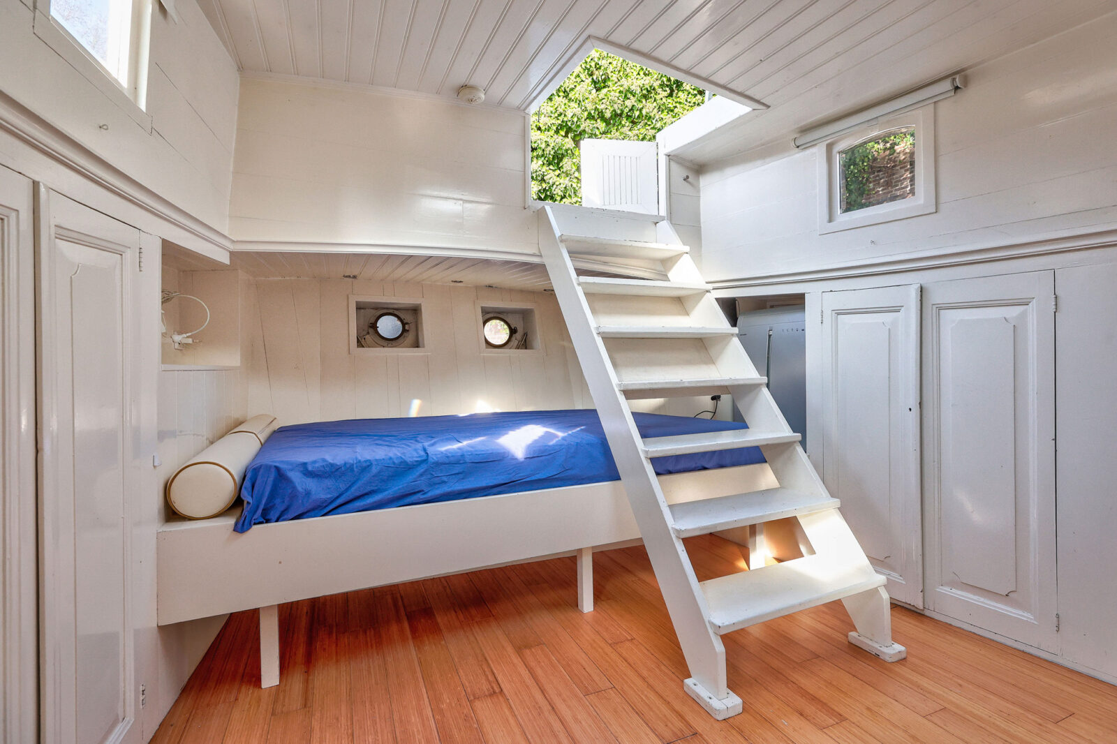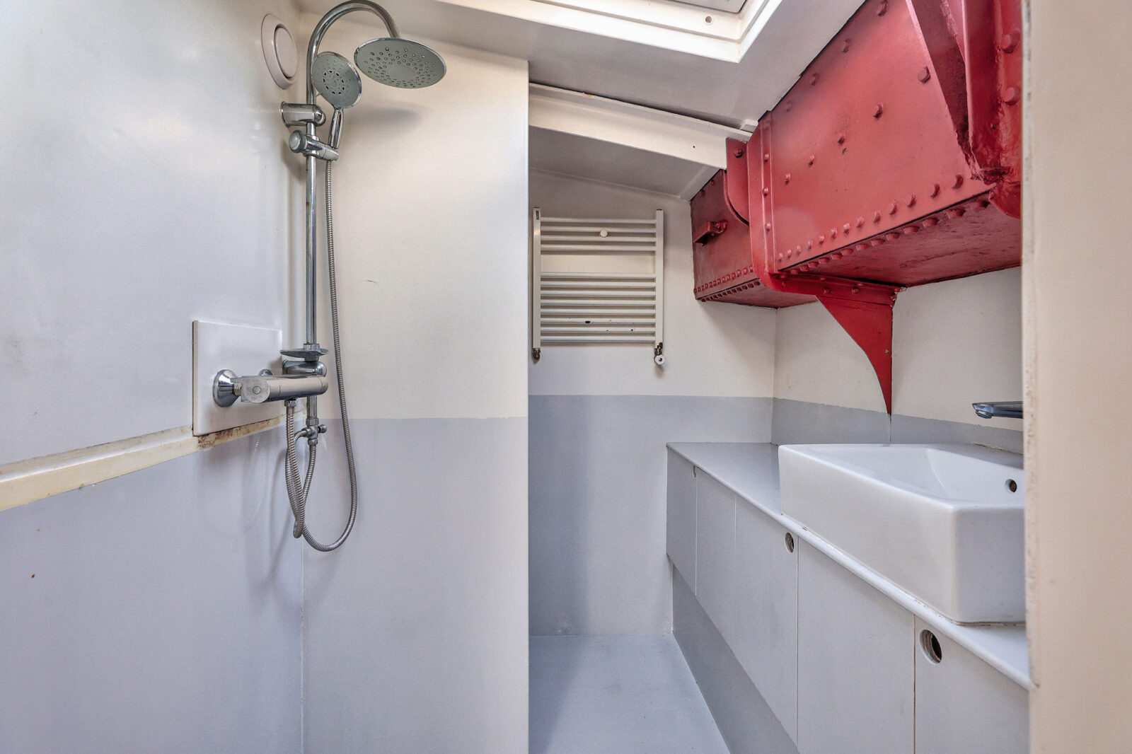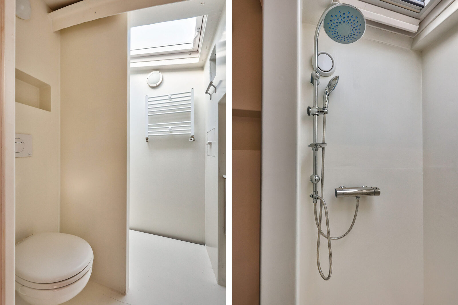 De badkamer van het hoofdverblijf is vorig jaar vernieuwd en eigentijds afgewerkt. Daarnaast is er een separaat toilet aanwezig. De slaapkamer beschikt over vaste inbouwkasten en ligt rustig in het schip.