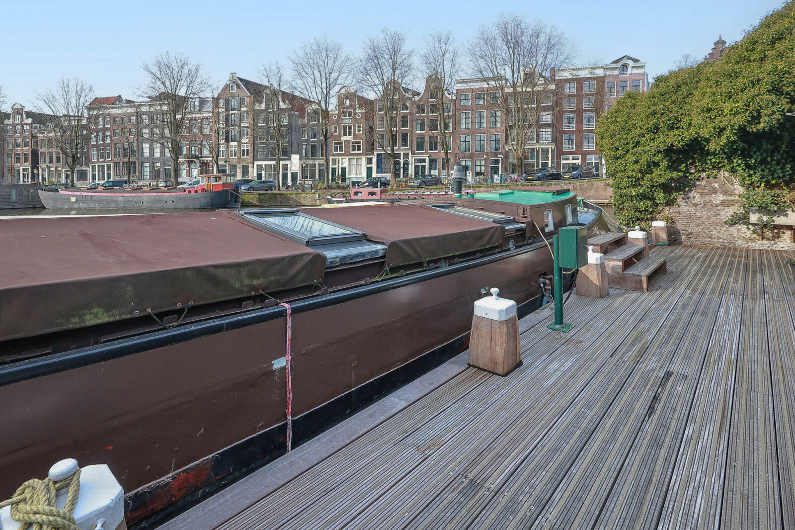 Aan de Binnenkant ligt deze charmante tjalk van 17,80 x 3,80 meter met vaste ligplaats. Een klassiek schip op een opvallend beschutte plek, waar de weg als het ware over het schip heen loopt. Dat zorgt voor rust en privacy, midden in de dynamiek van Amsterdam.