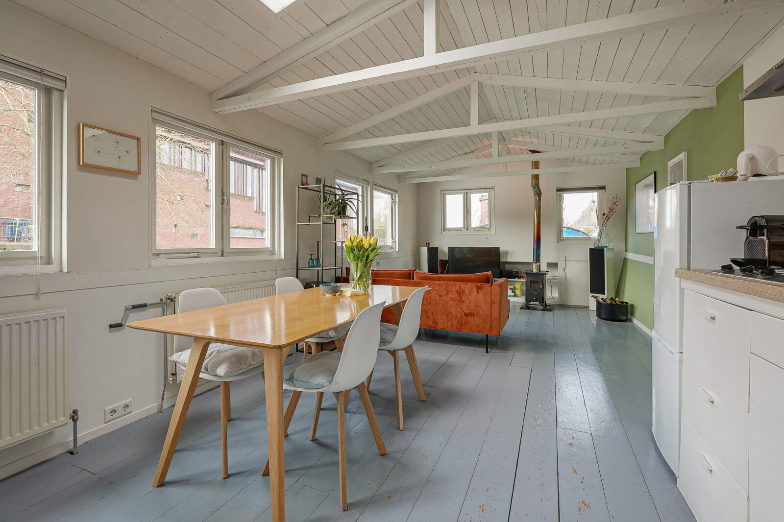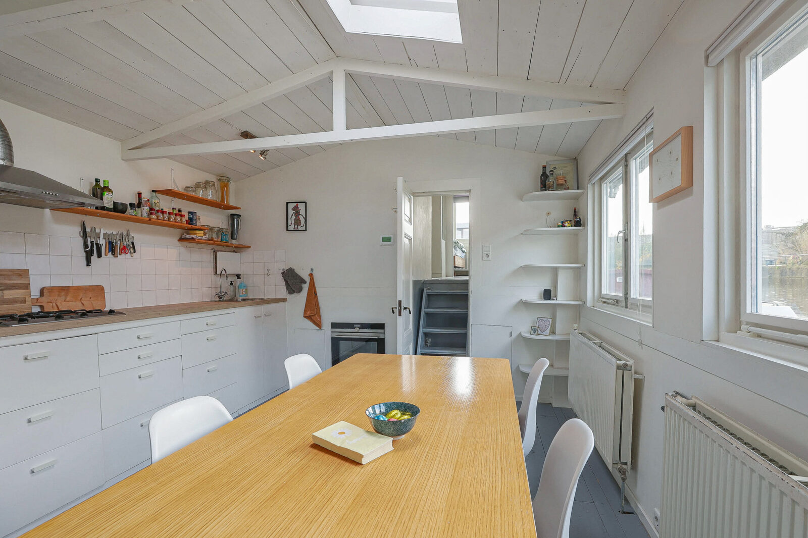 samenkomen op een plek die zelden vrijkomt. Wie dit woonschip binnenstapt, wil er