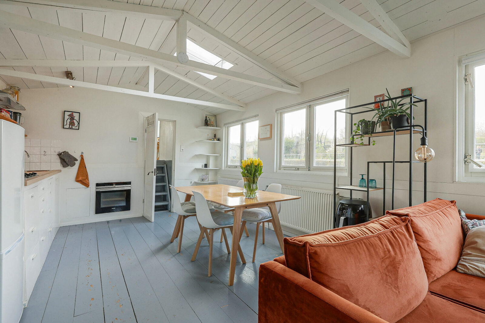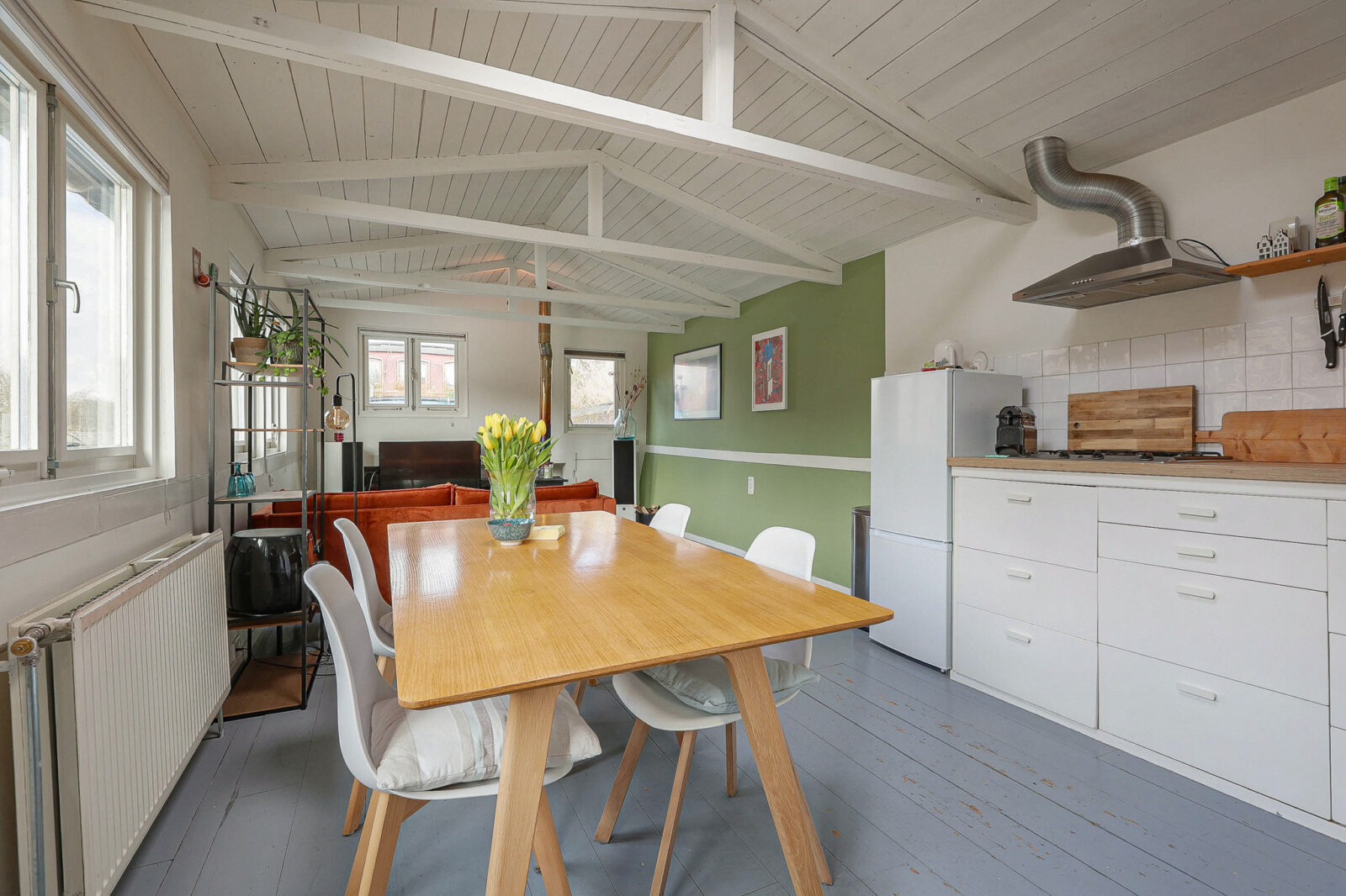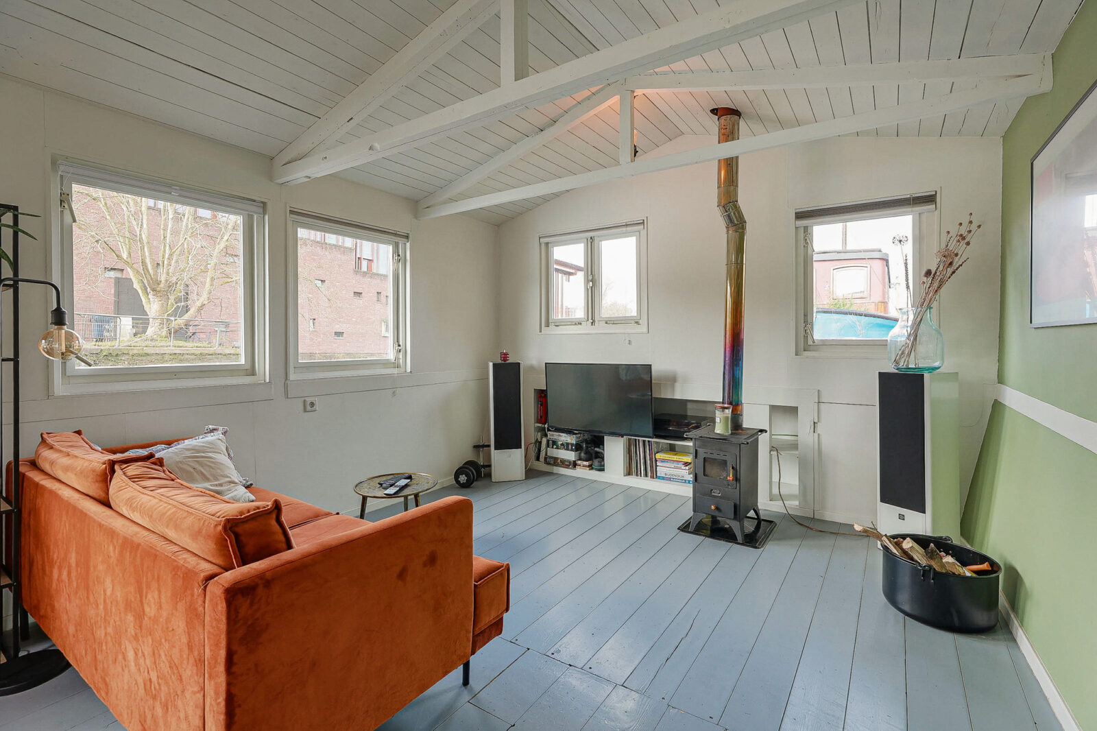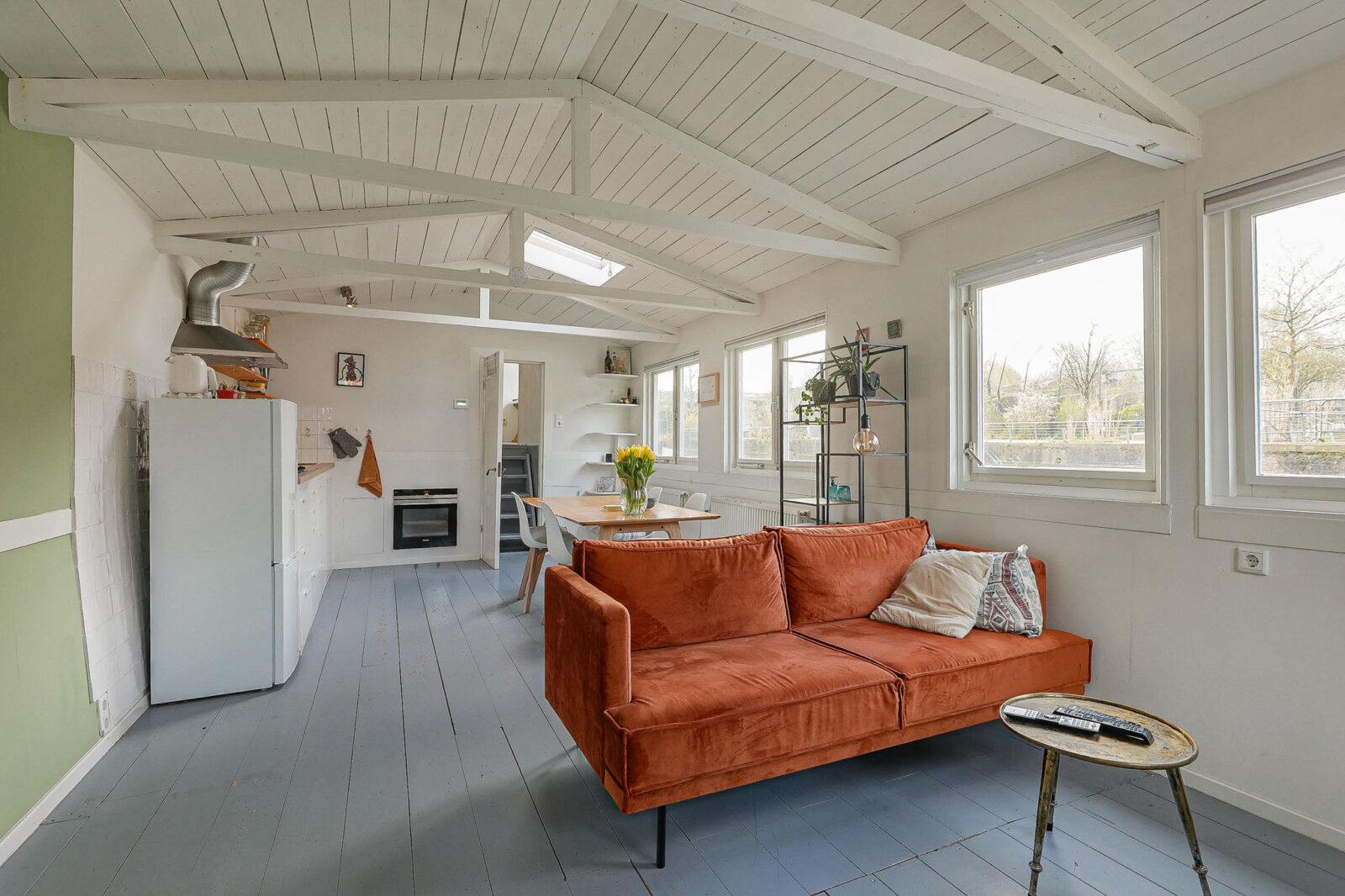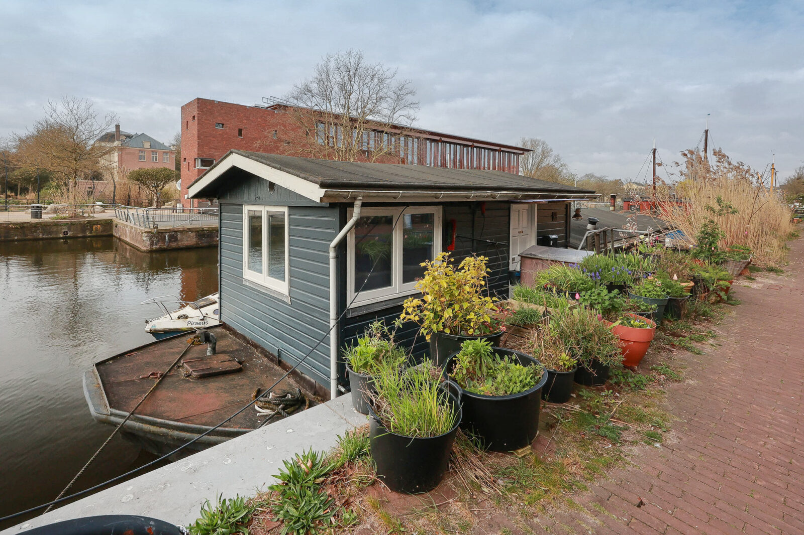water als buur,daar ligt dit charmante woonschip uit 1903, waar historie en eenvoud