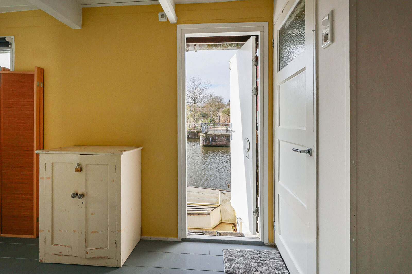 de deur aan de waterzijde. In deze ruimte bevinden zich ook het toilet, de separate