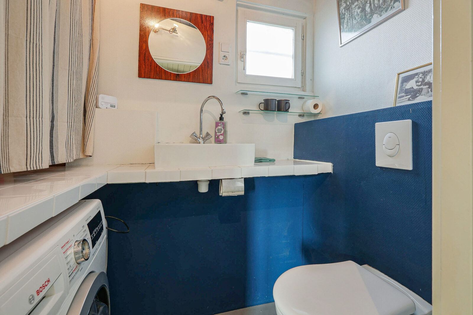 douche (recent vernieuwd) en de aansluiting voor de wasmachine – praktisch en