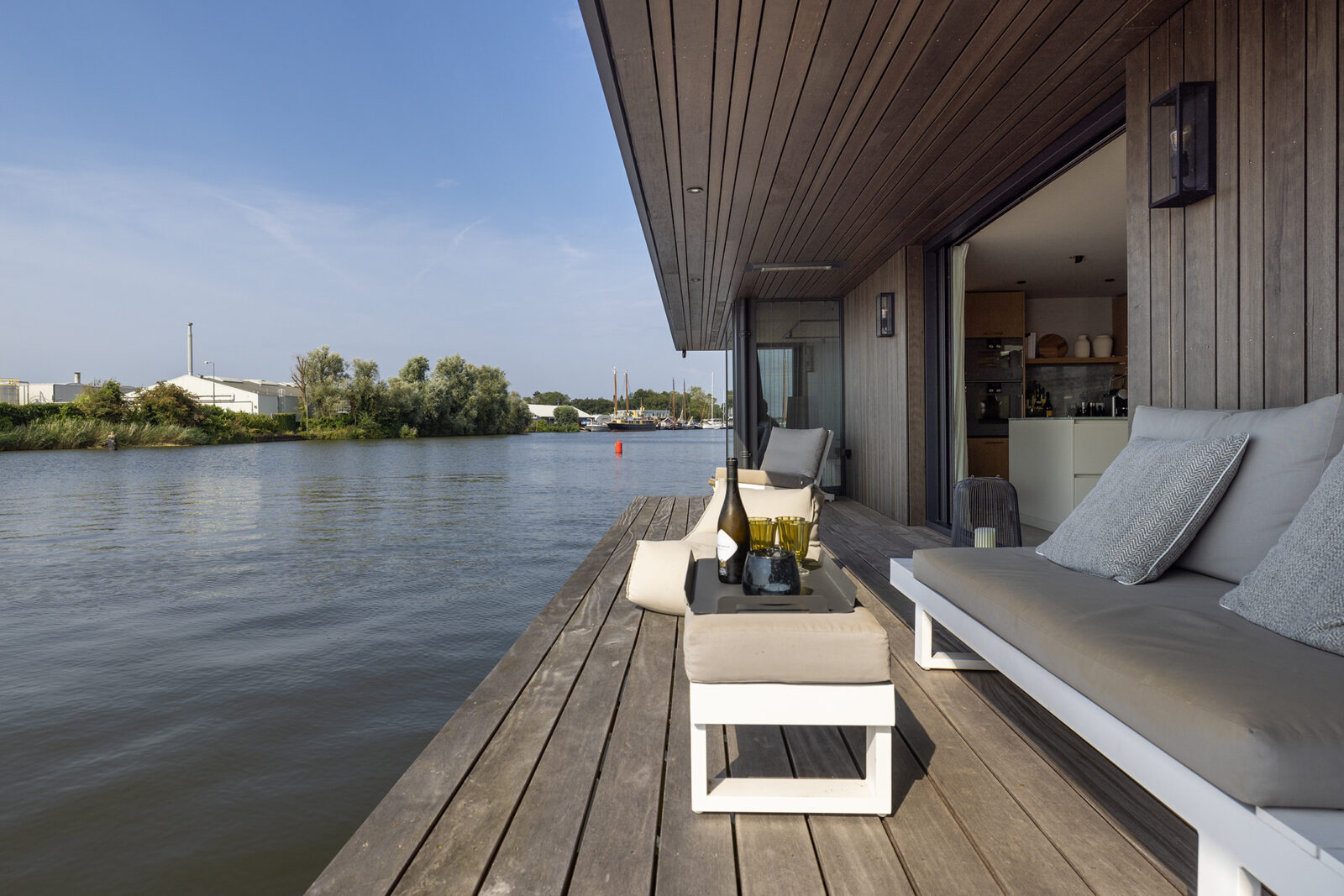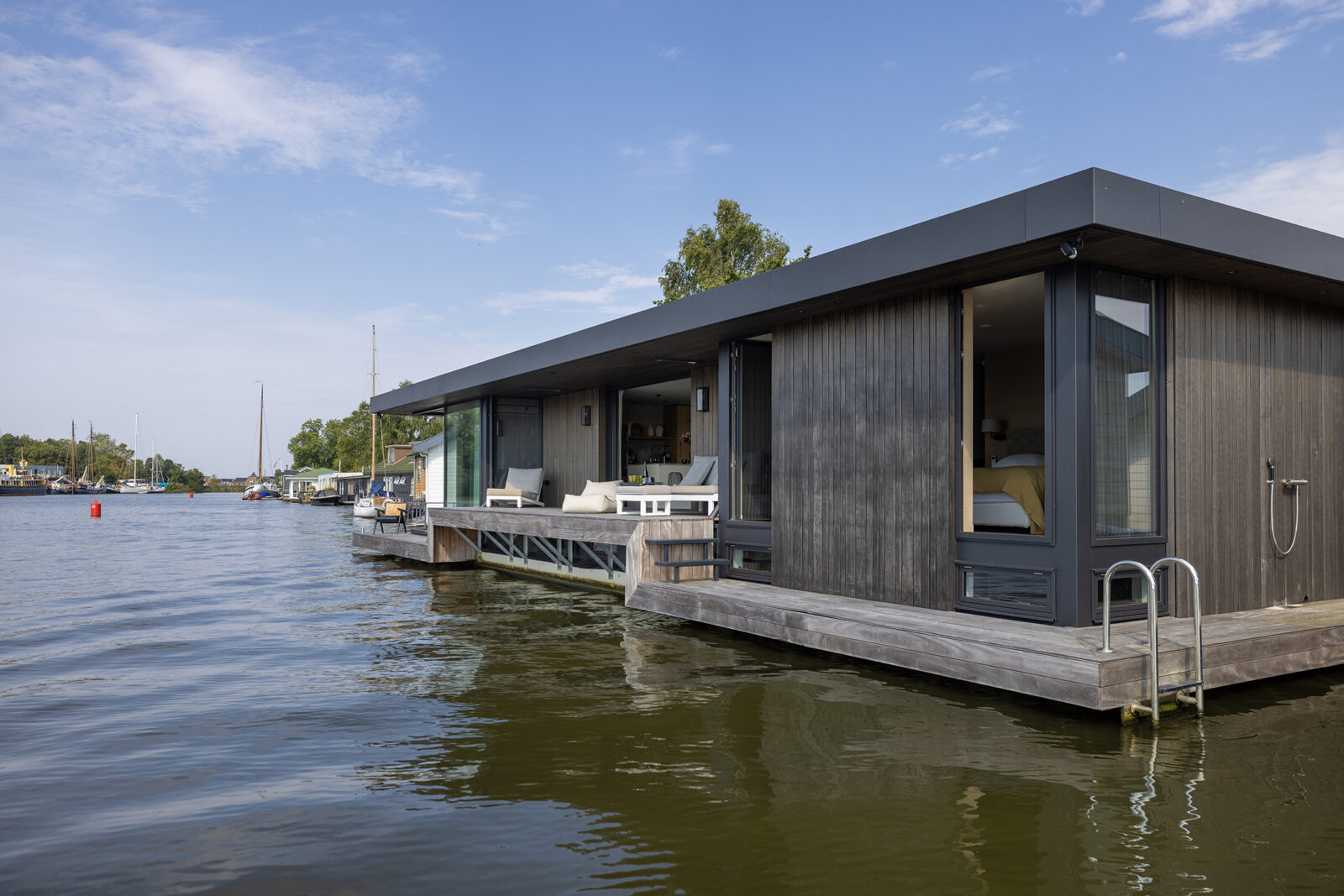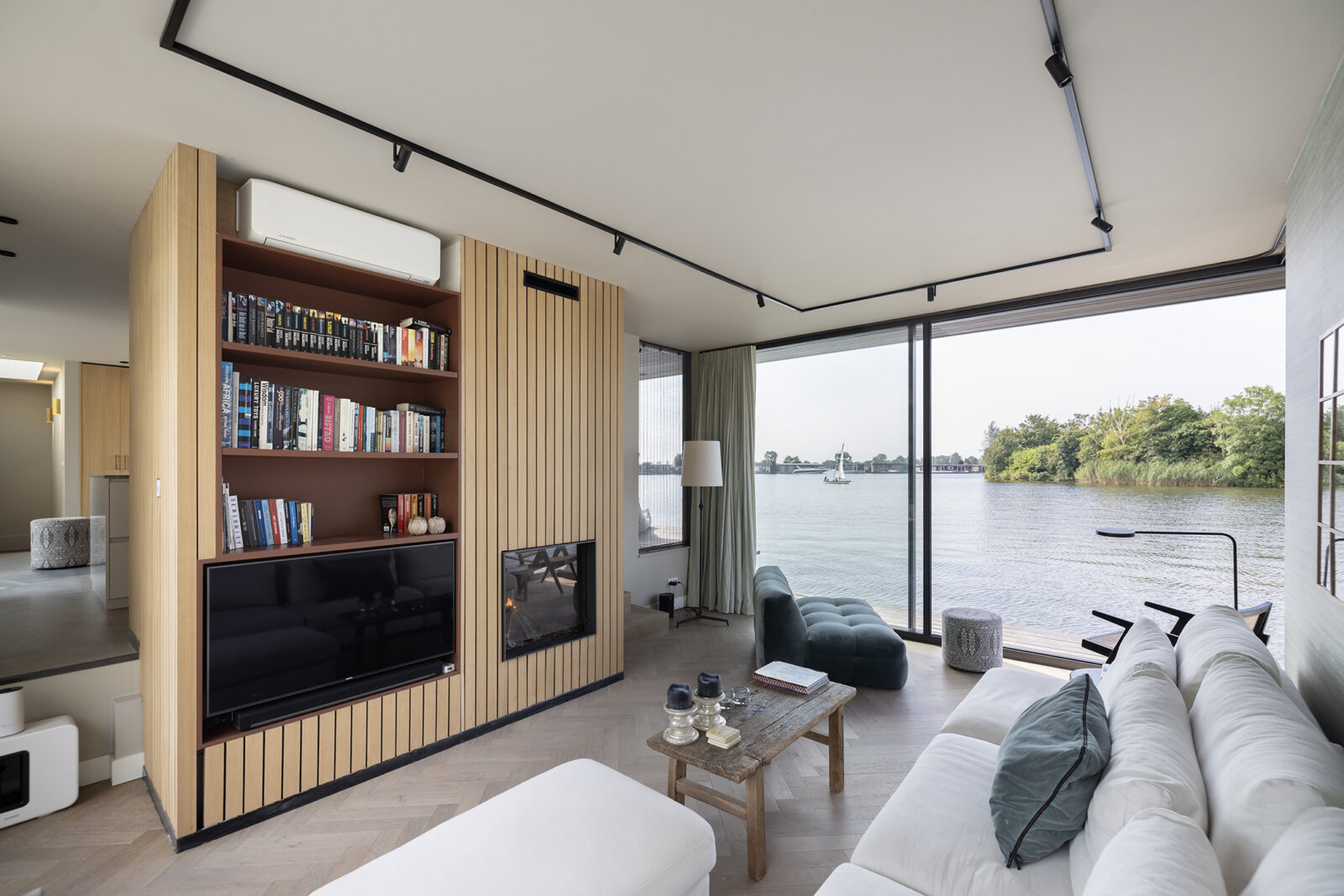 De watervilla is onder architectuur gebouwd en ingericht door een interieur styliste. Samen hebben zij een nieuwe standaard neergezet die watervilla heet. De centraal geplaatste woonkeuken met zicht op de rivier en de bloementuin heeft een groot kookeiland met kwartsiet marmeren werkblad, voldoende kastruimte en is uitgebreid voorzien van high-end Gaggenau apparatuur bestaande uit een stoomoven, hetelucht oven en een flex Inductie kookplaat met kookplaatafzuiging. Van het merk Liebherr de ijskast, de ijsmachine en de wijnklimaatkast. De Quooker (kokend, koelend en bruisend) zorgt voor louter gemak. Voor sfeervol dineren is er een ingebouwde gaswandhaard bij de eettafel. Een volledig te openen schuifpui geeft toegang tot het inpandige terras met warmteheaters in de overkapping en grandioos uitzicht over de Vecht. Ook naar de tuin is er een grote schuifpui. Naast de keuken ligt iets lager de zitkamer met ook hier grote te openen raampartijen aan wal- en waterzijde, airconditioning, en een houthaard. Eiken visgraat vloer. Aan de andere kant van de woonkeuken ligt een hal met garderobe en gastentoilet. Daarachter de master bedroom met airconditioning, zeer royale kastenwanden, eiken stroken vloer, opnieuw uitzicht over het water en een luxueus ingerichte badkamer en suite met toilet, een vrijstaand bad en marmer op het dubbele wastafelmeubel en marmer in de grote inloopdouche met al haar comfort.