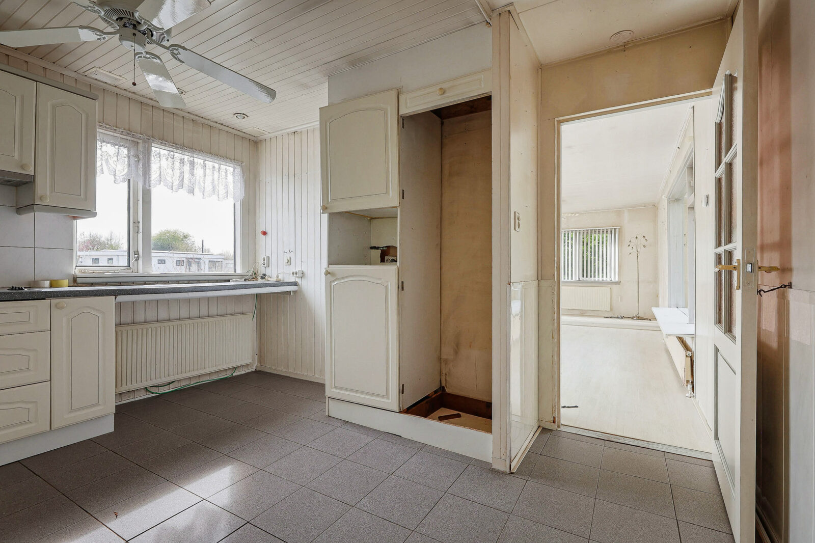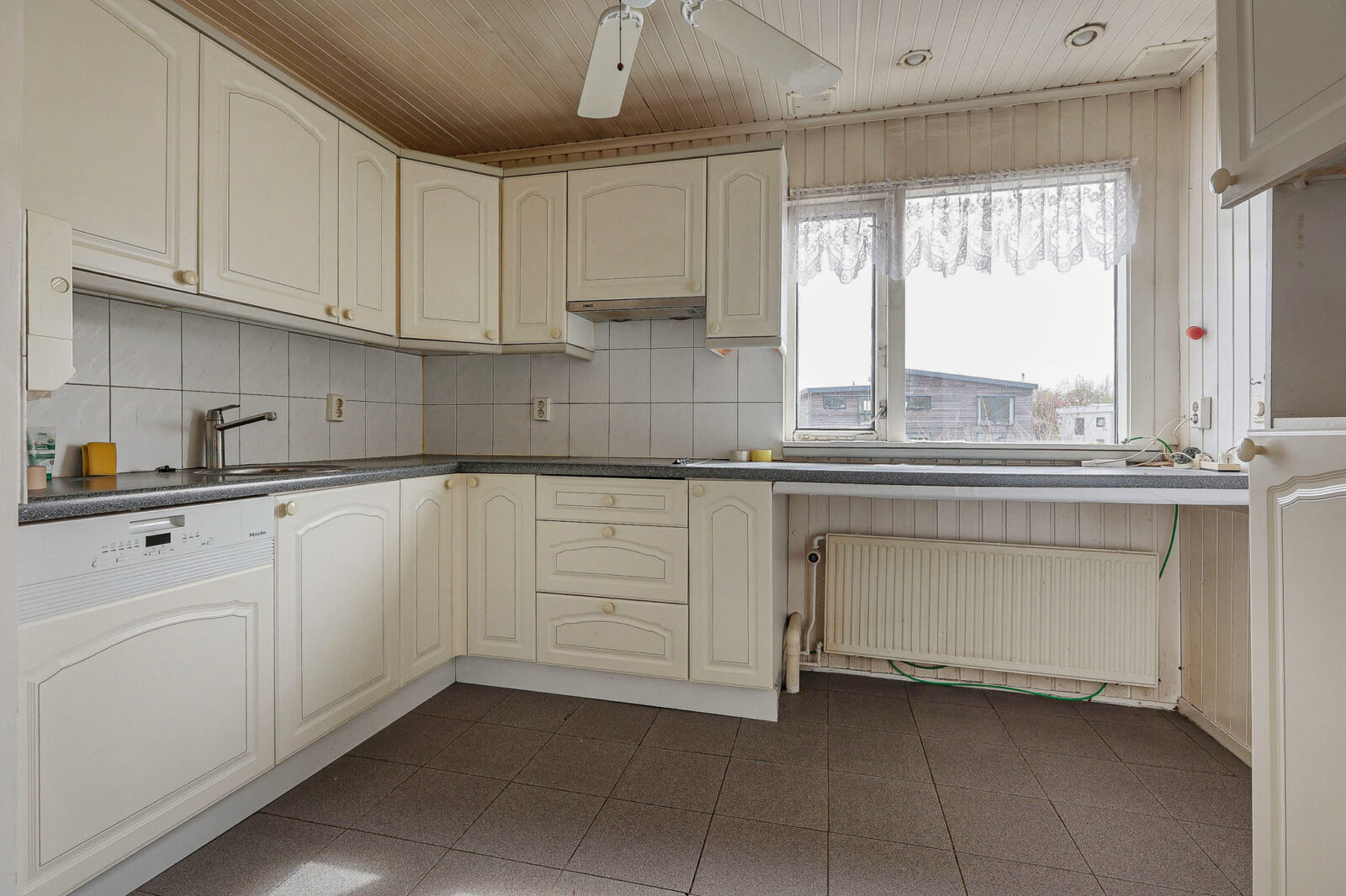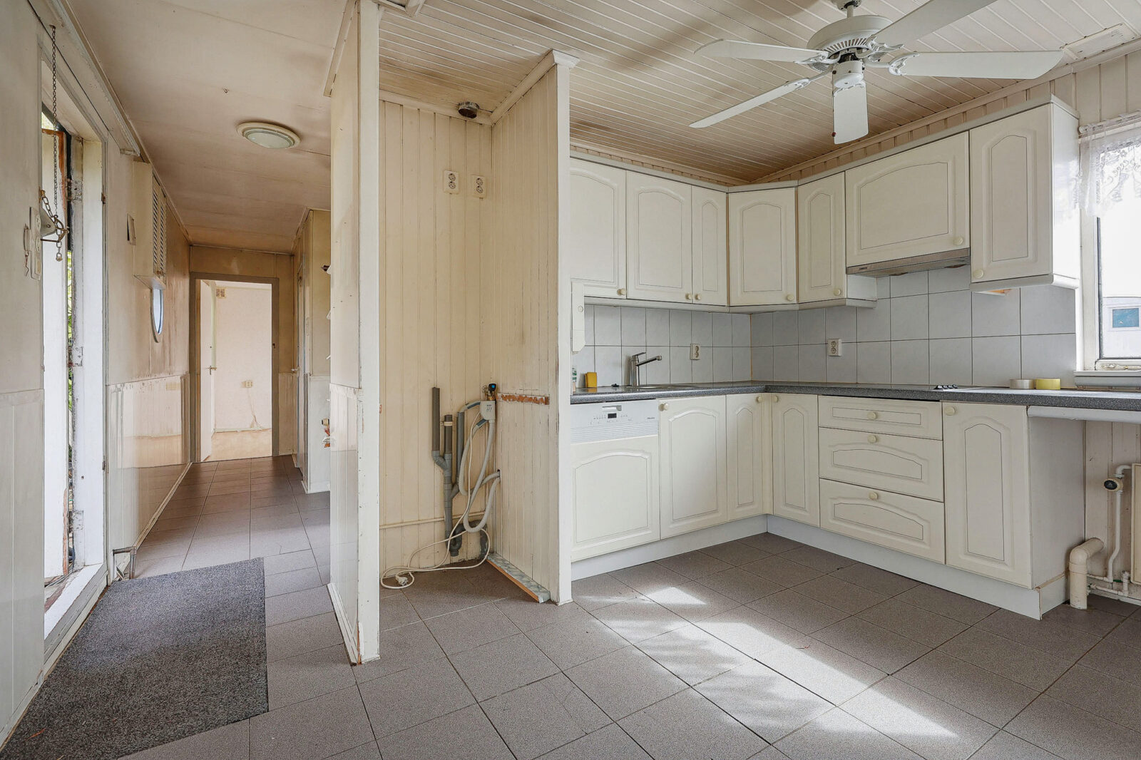 De keuken sluit aan op het woongedeelte en vormt een goede basis voor modernisering of een geheel nieuwe invulling. Verder zijn er meerdere kamers aanwezig, geschikt als slaapkamer, werkruimte, hobbykamer of logeerkamer. De vaste kastruimte zorgt voor extra gemak.