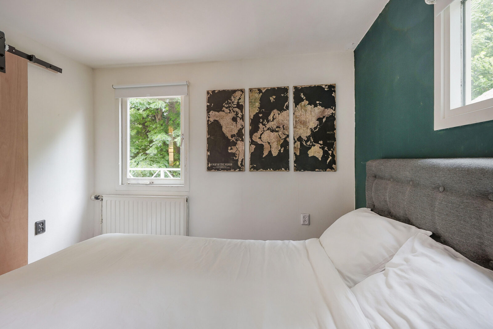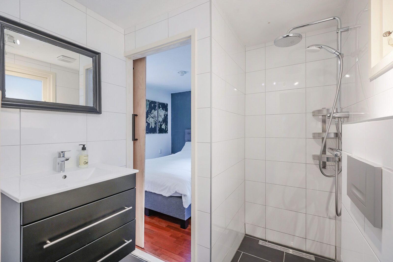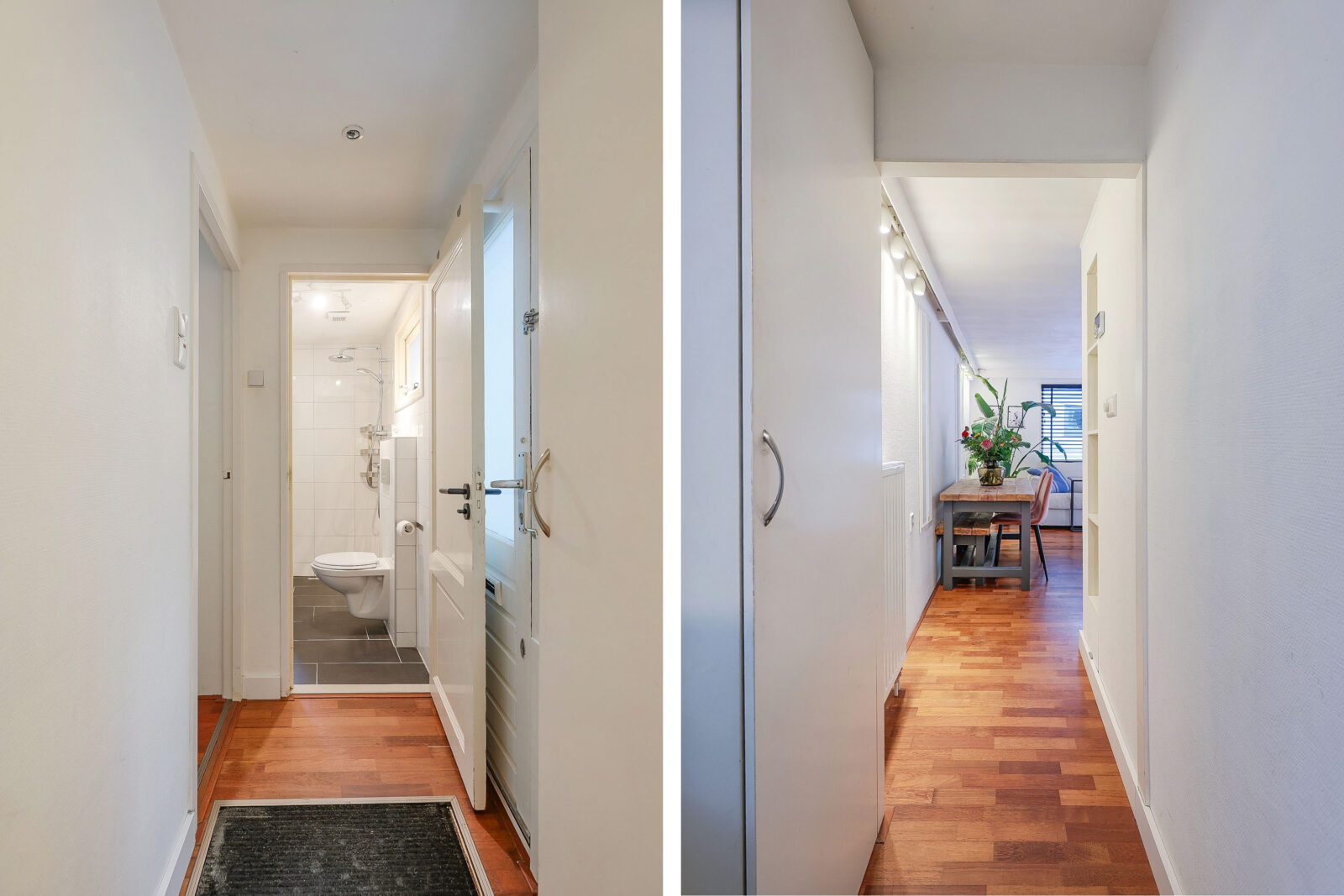 Er zijn twee slaapkamers, waarvan één uitstekend geschikt is als werk- of logeerkamer. De ouderslaapkamer beschikt over een vaste kast. De badkamer is voorzien van douche, toilet en wastafelmeubel. In het casco bevindt zich een praktische berging met aansluiting voor de wasmachine.
