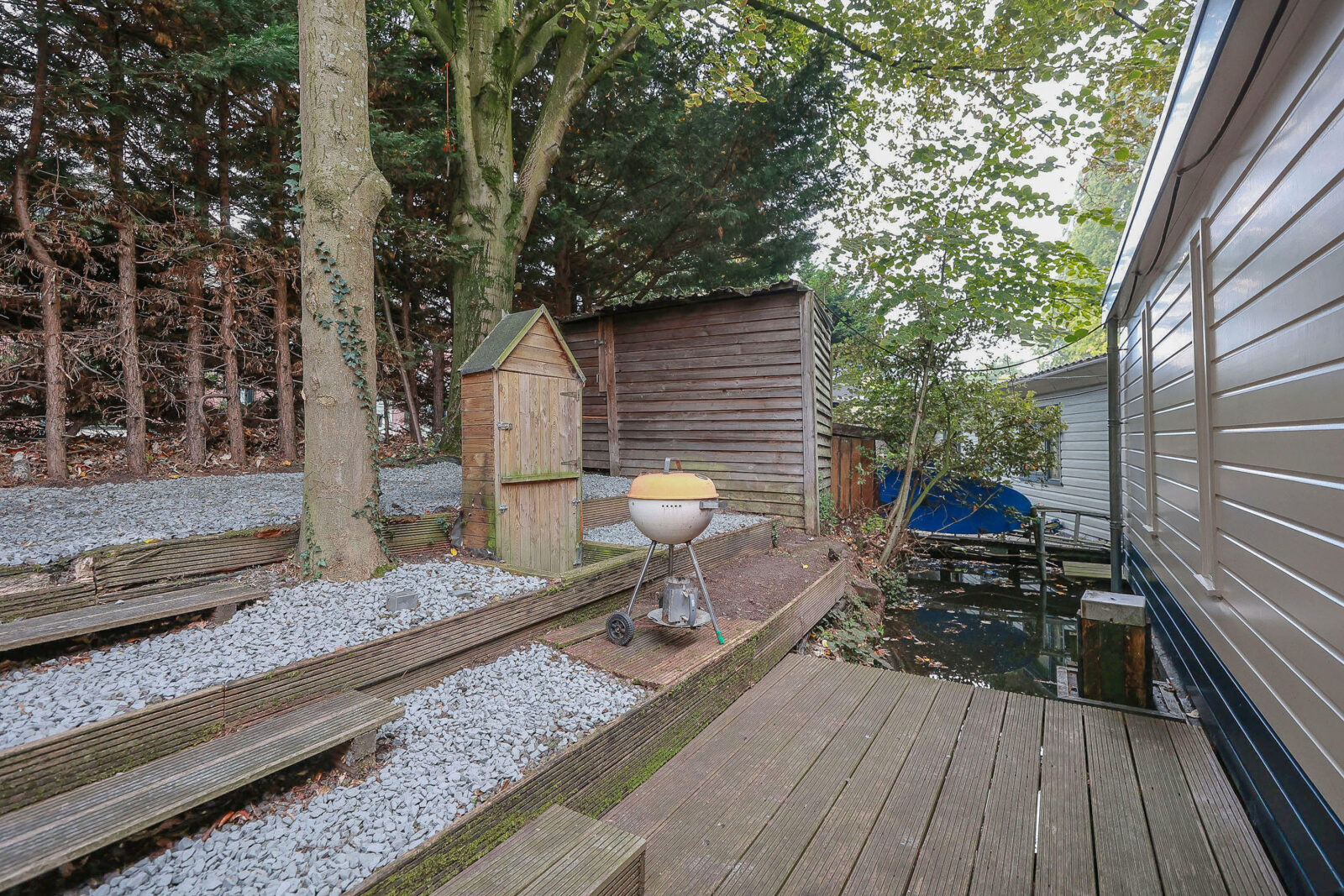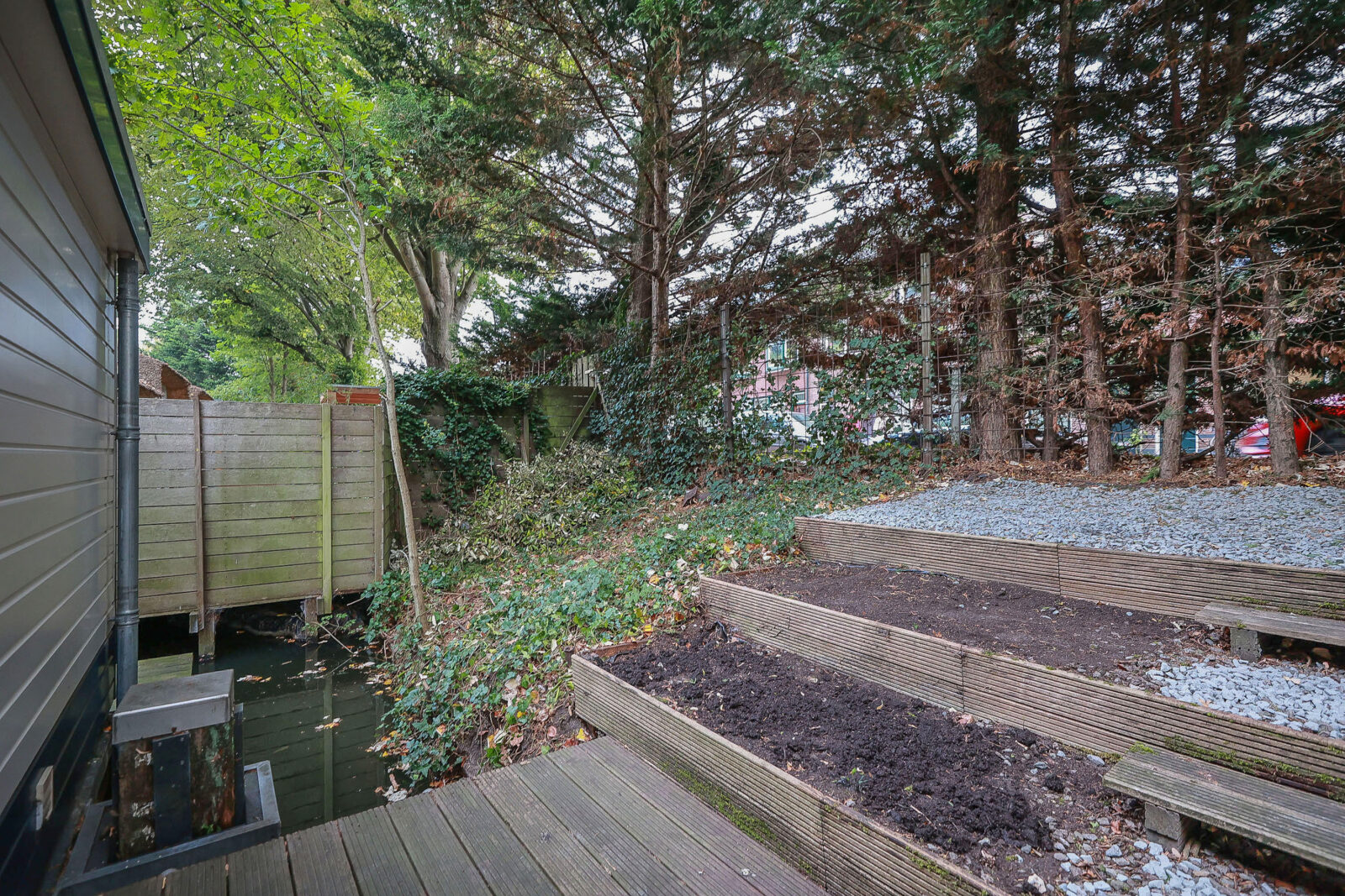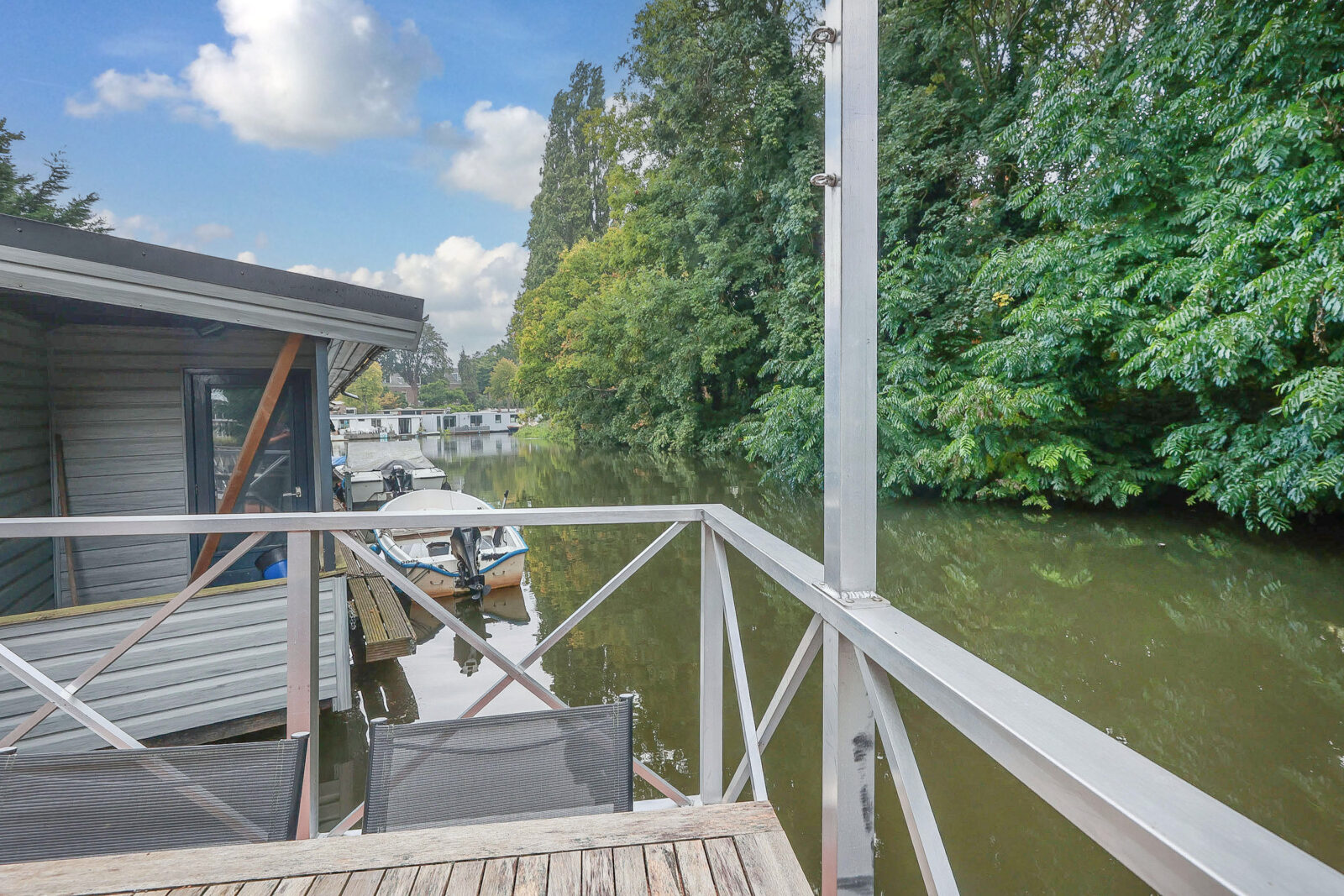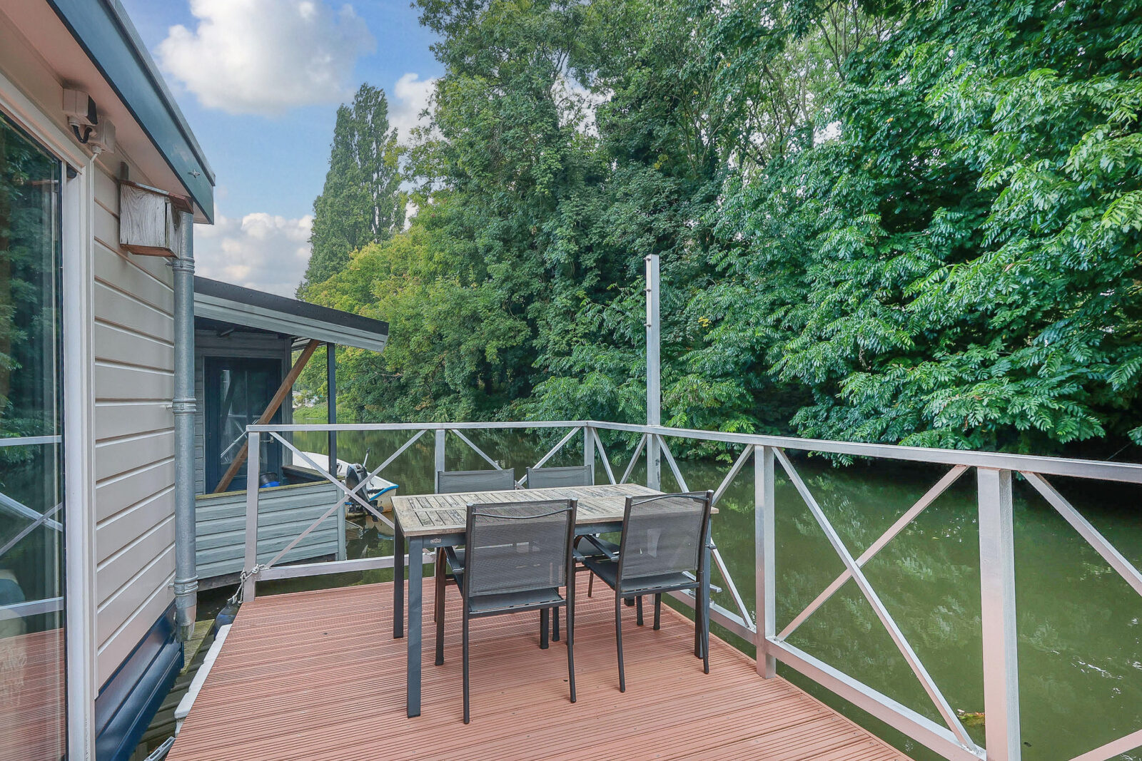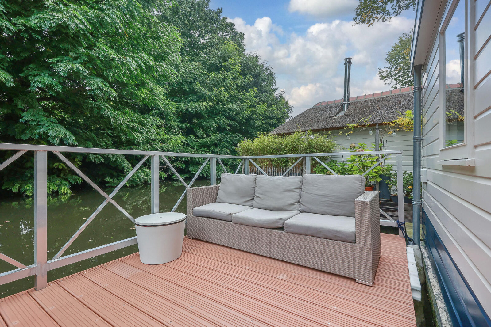 De ark is afgemeerd aan de lommerrijke Zijlsingel, met aan de waterzijde een ruim terras op het zuidoosten. Hier geniet je van de zon, het zachte kabbelende water en een vrij uitzicht over het groen aan de overkant. Aan de straatzijde ligt een verrassende tuin, aangelegd met houten vlonders, grindpaden en meerdere zitplekken. Een grote boom biedt natuurlijke schaduw, en in de houten berging is plek voor fietsen en tuingereedschap. De tuin is volledig omsloten door hoge coniferen, wat zorgt voor rust en privacy.
